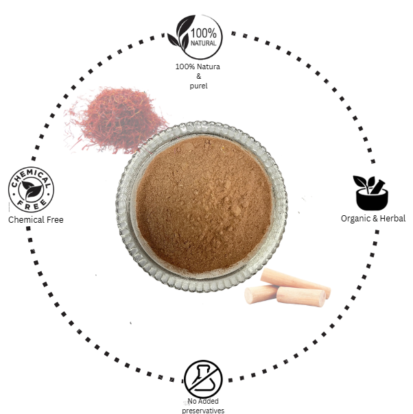 Keshar Chandan Face Powder Product Description : Kesar Chandan Face Pack – Natural & Organic Ubtan with Multani Mitti, Mulethi, Orange & Sandalwood – Ayurvedic Skincare for Glowing Skin